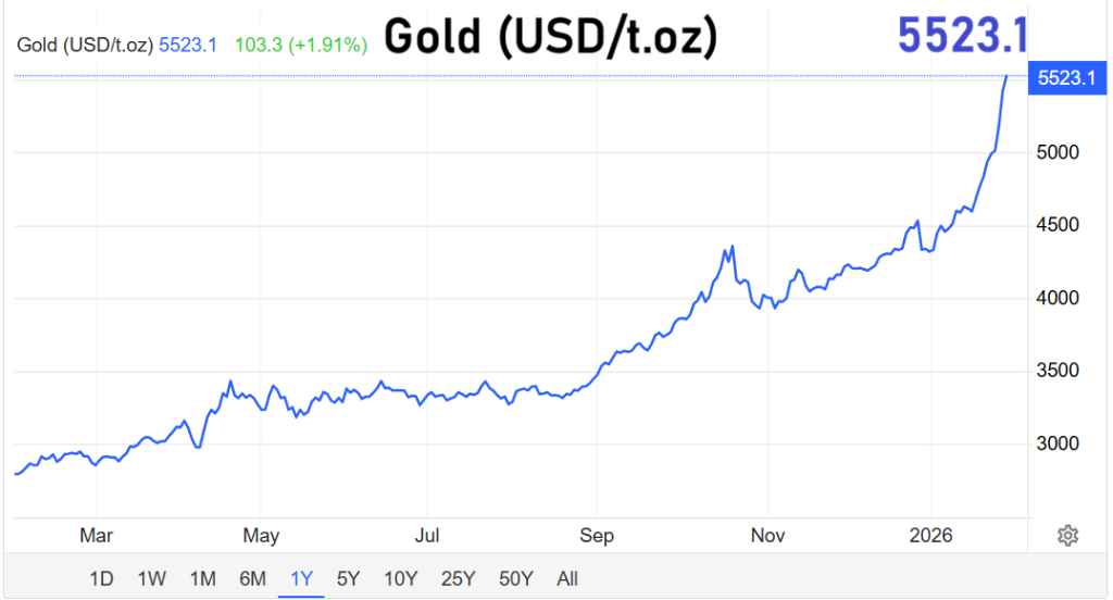 Parallel zur Silberhausse verändert sich die Rolle von Gold. Nach dem Sprung über 5.500 US-Dollar reagieren die Märkte weniger auf klassische Einflussfaktoren wie Konjunkturdaten, Inflationsraten oder Zinserwartungen. Stattdessen spiegelt der Goldpreis zunehmend Zweifel an der Stabilität staatlicher Währungen und an der Steuerungsfähigkeit der Geldpolitik wider.