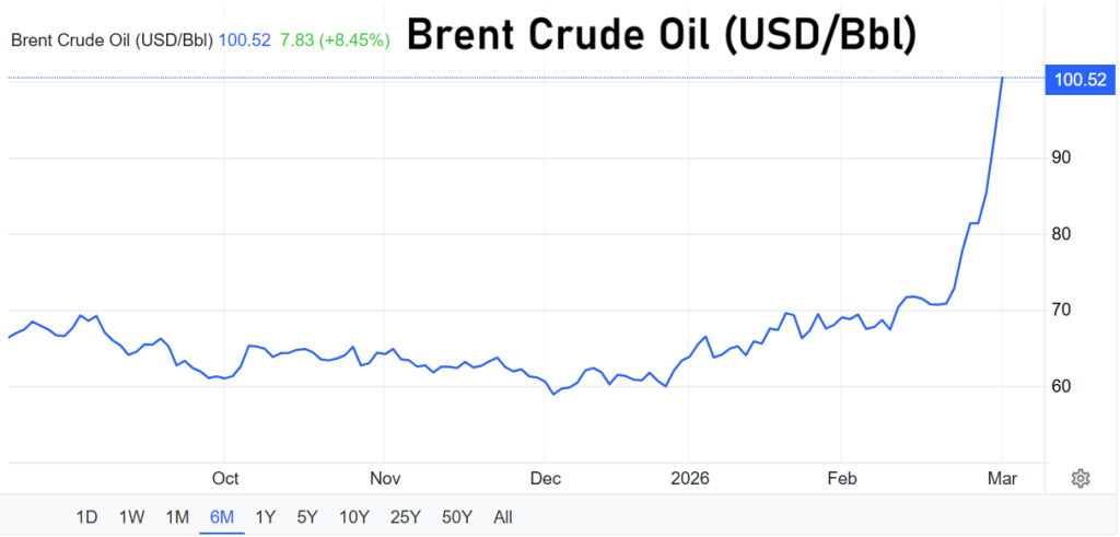 Die aktuellen Marktbewegungen zeigen bereits, wie stark geopolitische Risiken die Energiepreise beeinflussen können. Am internationalen Rohölmarkt legte der Preis für die Nordseesorte Brent im Tagesverlauf um rund 10 Prozent zu und erreichte etwa 102,21 US-Dollar pro Barrel.