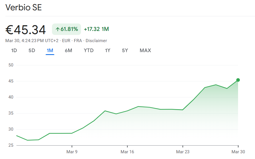 Dass die Nachfrage nach Biokraftstoffwerten derzeit nicht nur Südzucker erfasst, zeigt der Blick auf Verbio. Auch diese Aktie legte weiter zu und gewann rund fünf Prozent. Noch auffälliger ist jedoch die Entwicklung seit Beginn des Jahres. In diesem Zeitraum summiert sich das Plus bereits auf mehr als 120 Prozent.