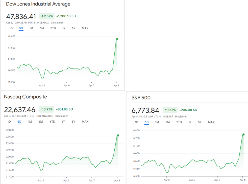 Die Einigung auf eine zweiwöchige Waffenruhe im Krieg zwischen den USA und dem Iran hat an den amerikanischen Finanzmärkten eine starke Gegenbewegung ausgelöst. Nach Tagen der Nervosität, militärischer Drohungen und stark steigender Ölpreise griffen Anleger an der Wall Street wieder entschlossen zu. Die Märkte werteten die Feuerpause als Zeichen dafür, dass eine noch größere Eskalation vorerst ausbleiben könnte.