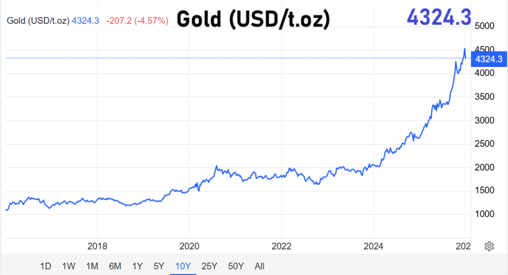 Obwohl Gold selbst nicht von neuen Handelsbeschränkungen betroffen ist, reagierte der Markt empfindlich. Die Notierung fiel zeitweise auf 4.366 US-Dollar, später sogar bis auf 4.331 US-Dollar. Händler erklärten dies mit vorsorglichen Verkäufen aus Angst vor weiteren Eingriffen sowie mit dem insgesamt niedrigen Handelsvolumen kurz vor dem Jahresende.